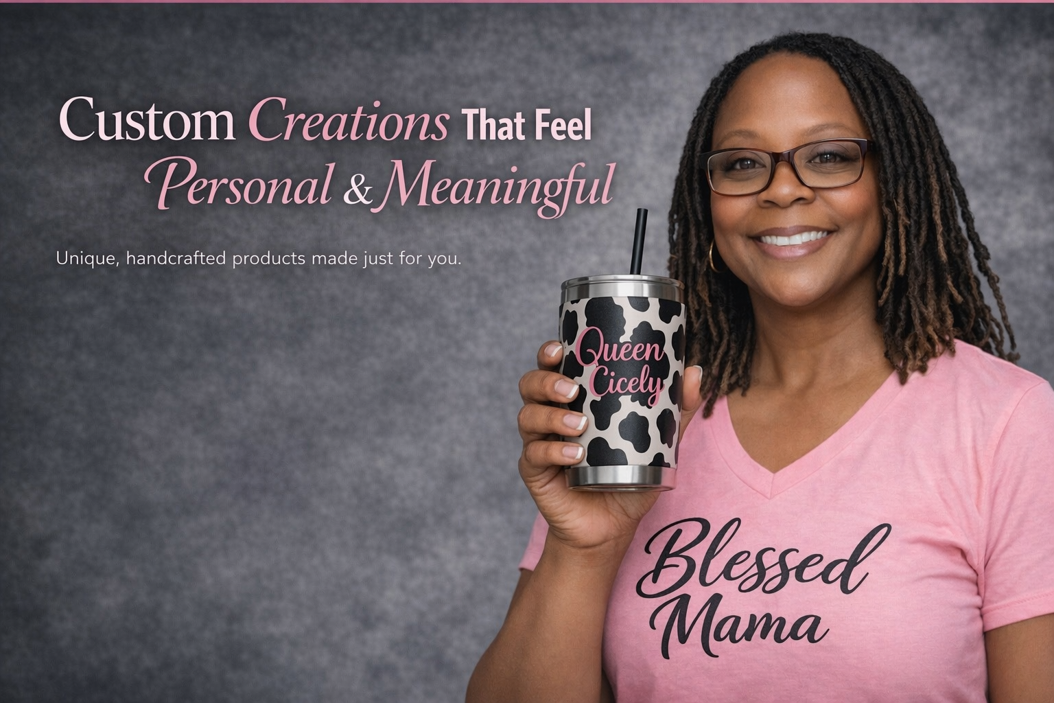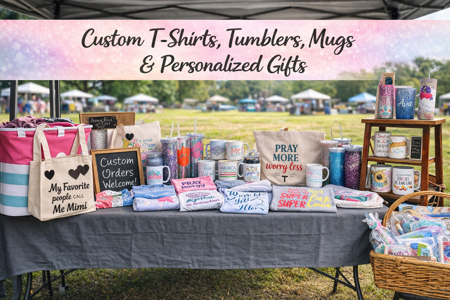 View fullsize Start Your Order Apparel Drinkware Personalized Gifts Memorial Items Inspirational Designs Special Occasions Shop Now About Crafting one-of-a-kind creations that celebrate every single special moment. Learn more Bold Statement Tees Custom Glitter Tumblers Personalized Name Mugs